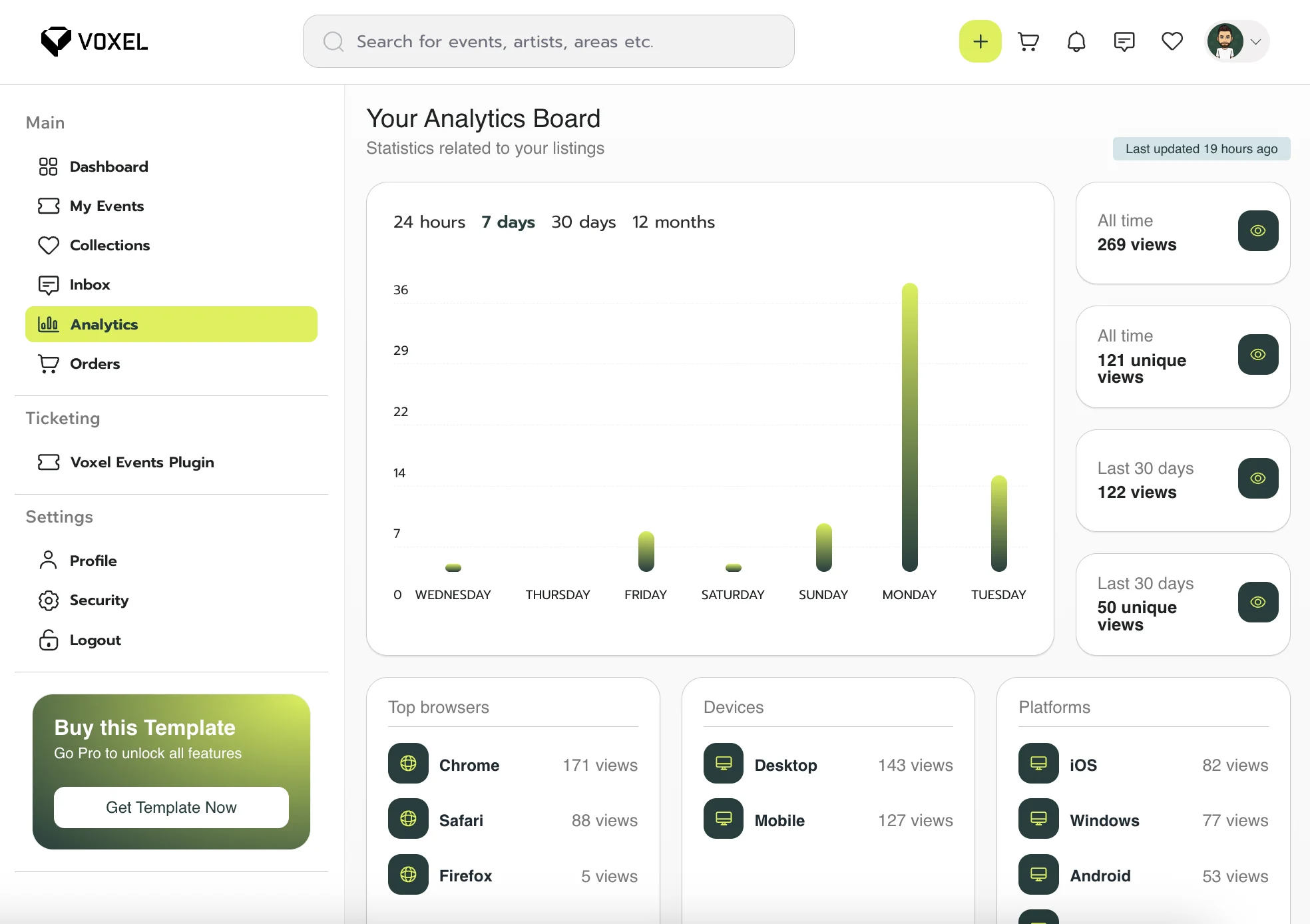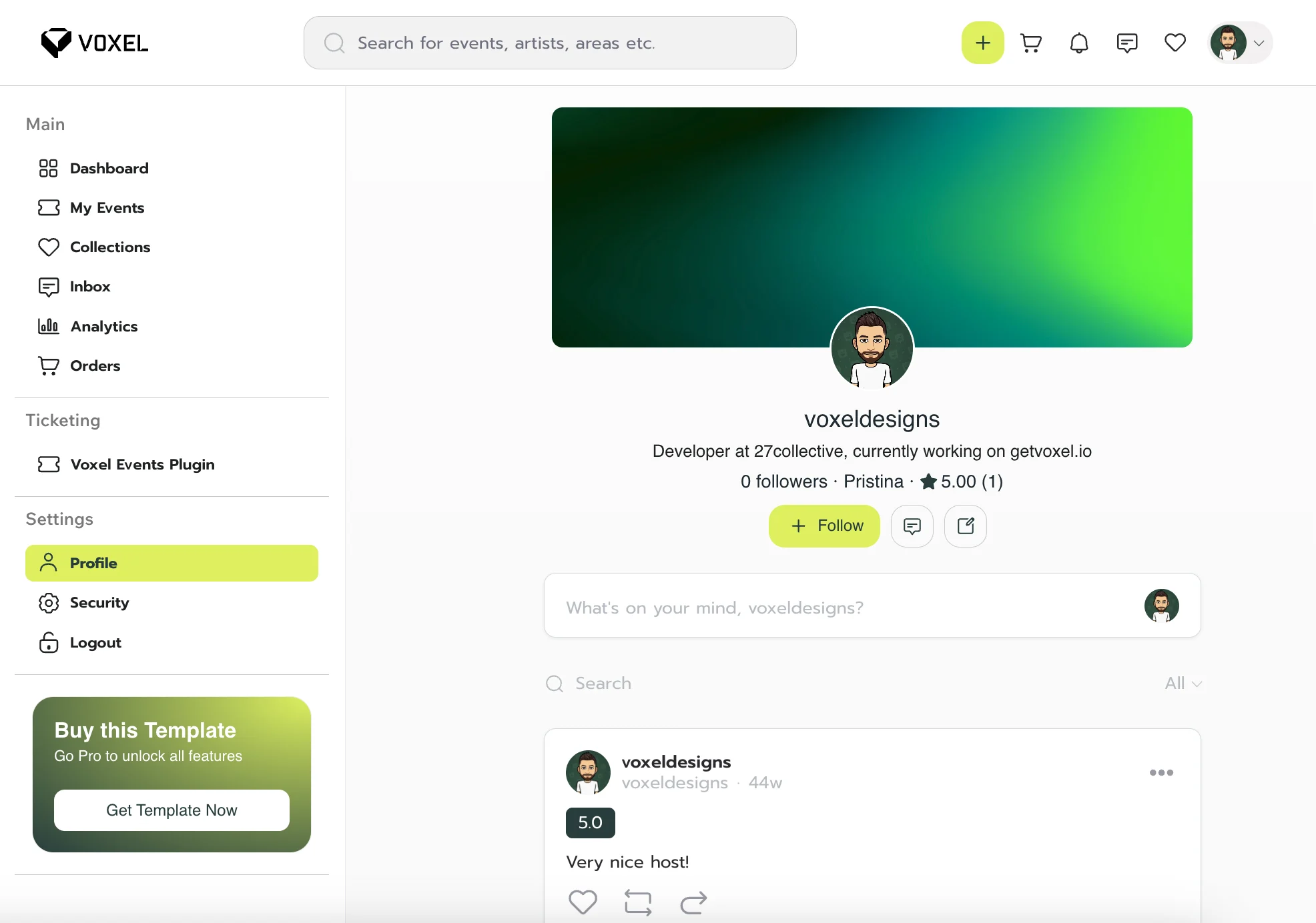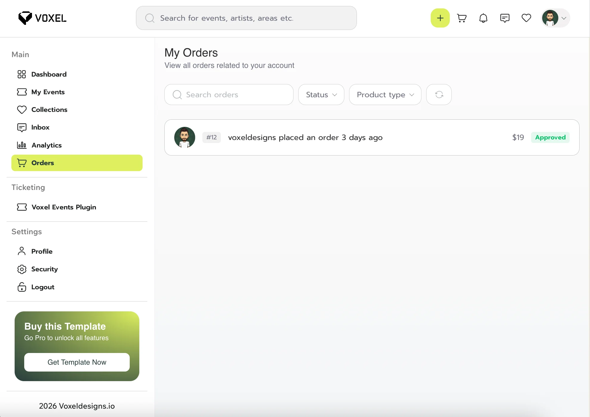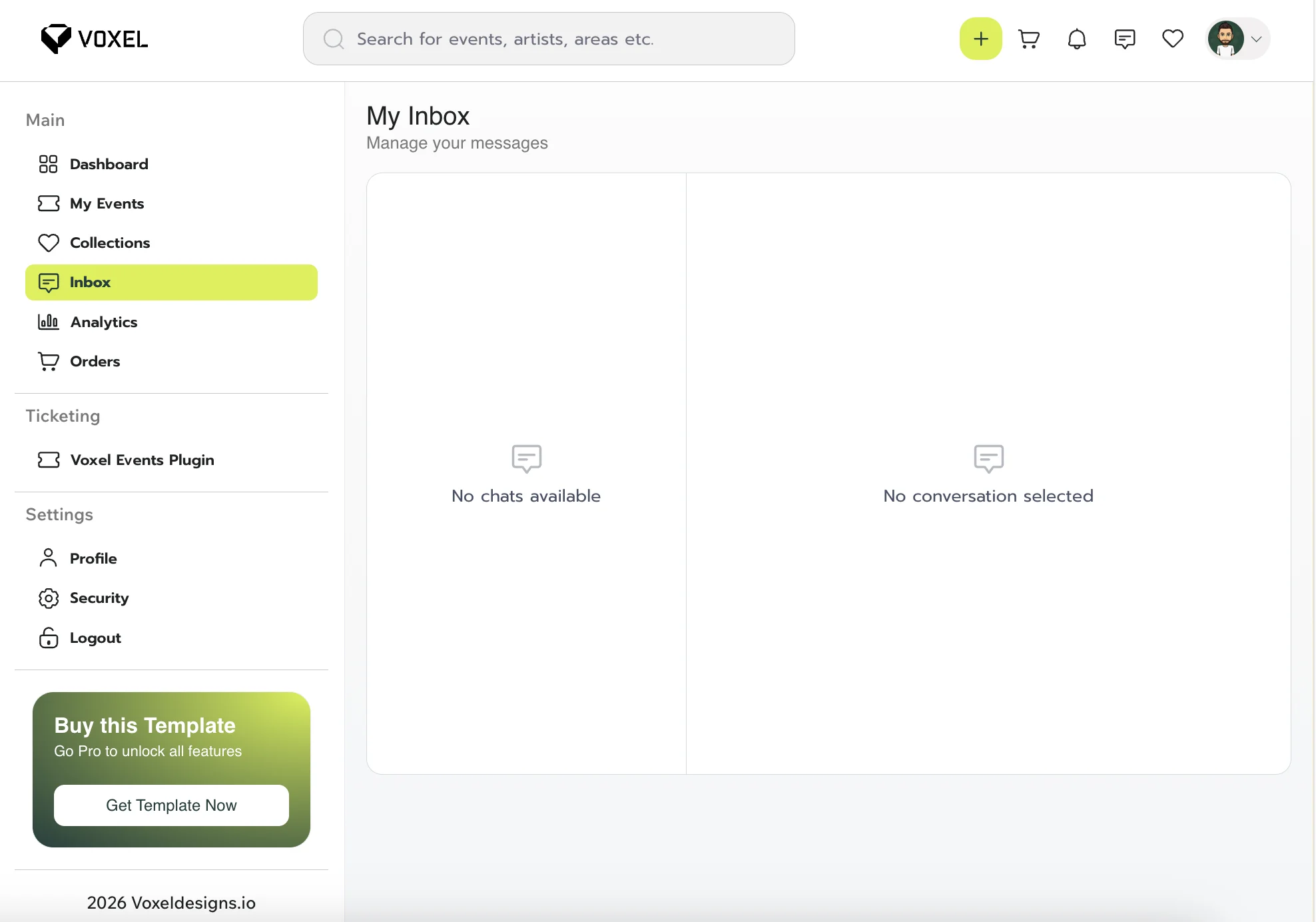 The ticketing features shown in this design template are provided by Voxel Events and are for demonstration purposes only.